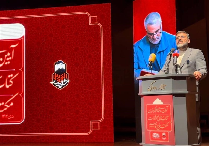 به گزارش خبرگزاری تسنیم،‌ آیین رونمایی «جدیدترین کتاب‌های انتشارات‌ مکتب حاج قاسم» عصر امروز یکشنبه 10 دی ماه و در آستانه سالگرد شهادت شهید حاج قاسم سلیمانی با حضور محمدمهدی اسماعیلی وزیر فرهنگ، غلامعلی حدادعادل عضو مجمع تشخیص مصلحت نظام، سیدمحمود اسلامی معاون توسعه مدیریت و منابع وزارت فرهنگ و ارشاد اسلامی، یاسر احمدوند، معاون فرهنگی وزارت فرهنگ و ارشاد اسلامی، محمد اللهیاری مدیرکل بنیاد رودکی و زینب، نرجس، حسین و محمدرضا سلیمانی (فرزندان شهید سلیمانی)، محمدمهدی همت فرزند شهید همت و جمعی از همرزمان سردار شهید و همچنین اصحاب فرهنگ و هنر در تالار رودکی برگزار شد.